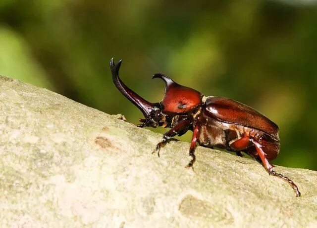 维纳斯骨螺的壳(左)与双叉犀金龟(右)。图片:Richard Parker & LiCheng Shih / flickr