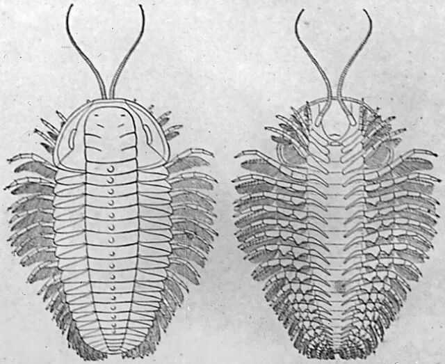 下面这张复原图详细地描绘了三叶虫的基本身体构造: