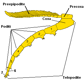 “兵分两路”的附肢,下面一肢是足,上面一肢用于呼吸。原图:Micha L. Rieser;改动:Antonov / wiki commons