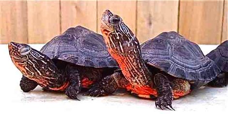 黑颈乌龟又名红颈乌龟、广东乌龟等,分布于我国广东、广西两省,国外报道于越南北部。体型大小与大头草龟相当,头部亦较宽大。初生的黑颈乌龟背甲呈黑灰色,腹面为鲜艳的橘红色,头颈部具有黄色线纹。然而与乌龟截然相反的是,黑颈乌龟的成年雌性体色较深,而成年雄性的头颈部、四肢两侧及尾部等皆呈橘红色或绛红色。
