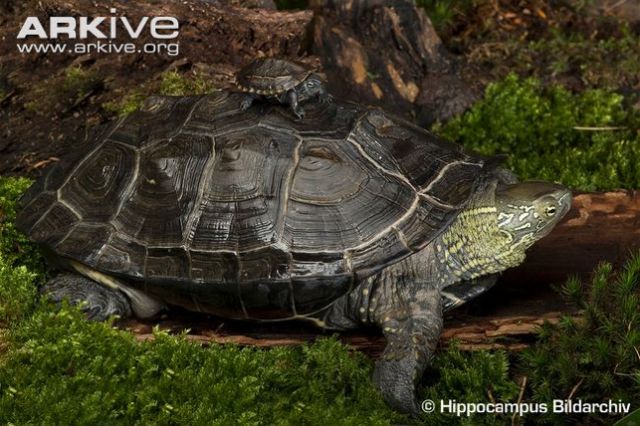 幼年乌龟和成年雌性乌龟。图片:Hippocampus Bildarchiv / arkive.org