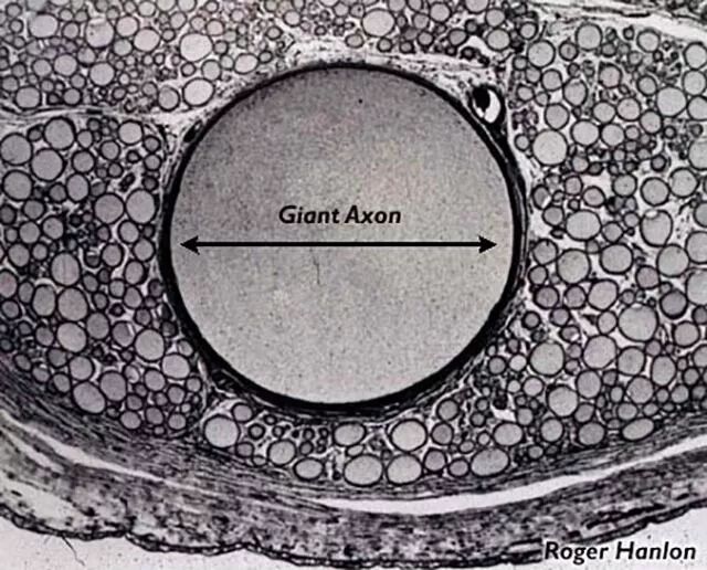 为什么是皮氏枪乌贼?原因有两个。第一,它是当时较为常见且易于获得的大型枪乌贼;第二,当然这才是最重要的:皮氏枪乌贼的神经纤维绝对足够粗大,粗大到连上个世纪中叶的实验设备都可以轻松应对。