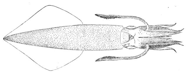 皮氏枪乌贼(Doryteuthis pealeii)和之前介绍过的中国尾枪乌贼一样,都属于头足纲,枪形目,闭眼亚目,枪乌贼科。之所以叫“枪乌贼”,是因为它们的躯干大体呈圆筒状,后端逐渐变细,且两侧具有侧鳍,恰似长枪的枪头。过去,皮氏枪乌贼和中国尾枪乌贼都属枪乌贼属,不过随着分类工作的深入,后者已被划归尾枪乌贼属,而前者也被分在了美洲枪乌贼属。