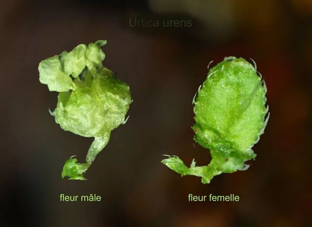 欧荨麻(Urtica urens)的雄花(左)和雌花(右)。图片:Pancrat/Wikimedia Commons