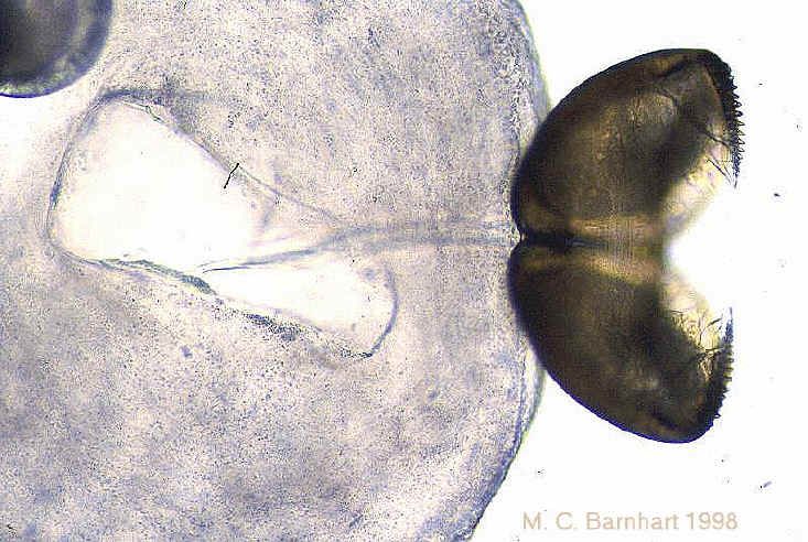 河蚌的钩介幼虫。图片:M. C. Barnhart 1998