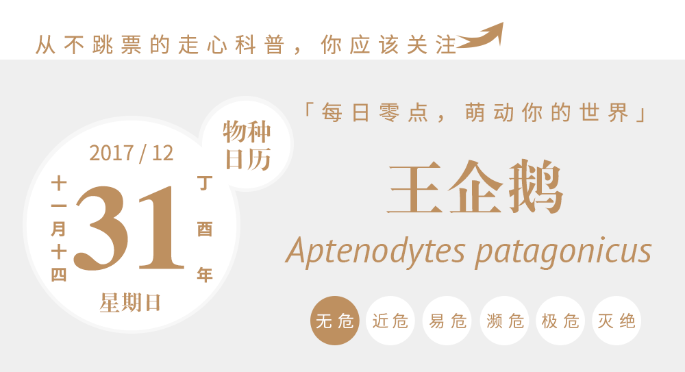 凭借特化的翅膀,企鹅适应了在冰海里飞翔。在食物丰富的南极幅合带,不惦记天空,专心钻水里吃吃吃是个好主意。王企鹅体重约11~12kg,略超过最重的飞鸟,却很适合潜水。王企鹅和帝企鹅共有的属名Aptenodytes,意即希腊语“无翅的潜水者”。