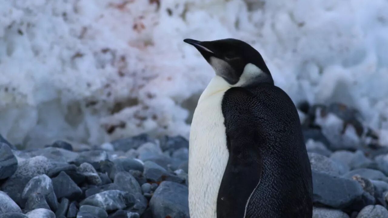 偶然在南设德兰群岛(South Shetland Islands)看到的孤独的帝企鹅,可能是出远海觅食然后上岸休息的亚成鸟。虽然这只亚成鸟身上的黄色比成鸟淡,还是可以看出色斑形状与王企鹅的区别。图片:紫鹬