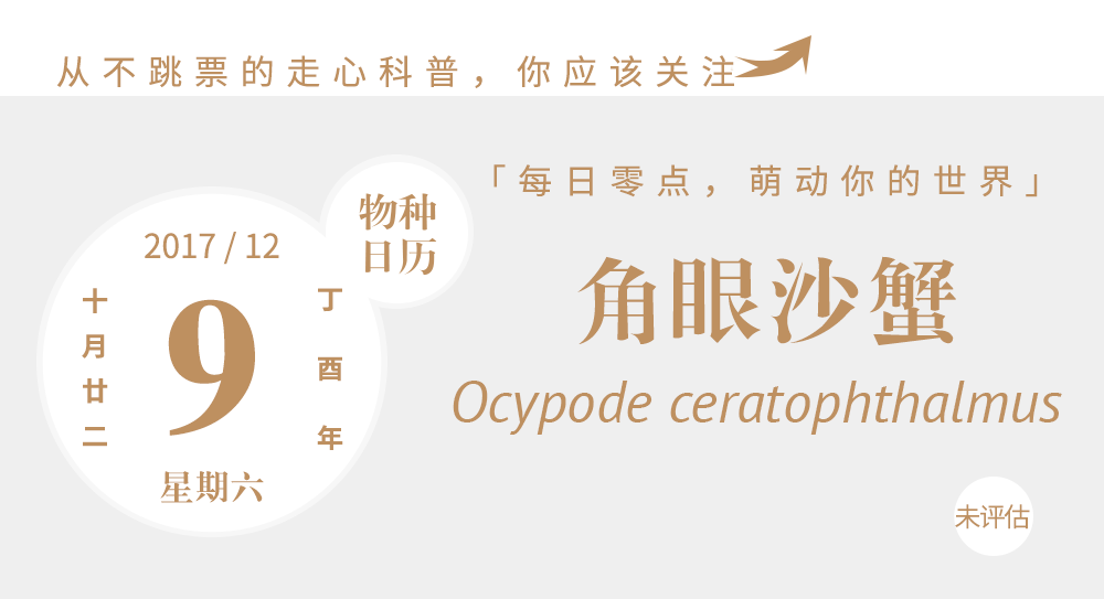 角眼沙蟹Ocypode ceratophthalmus隶属于沙蟹科沙蟹属,因其眼睛末端延长的角状突起而得名角眼沙蟹,也被人俗称为沙蟹。沙蟹其实是筑巢生活在潮间带沙滩上沙蟹总科Ocypodoidea其他很多种类的统称。