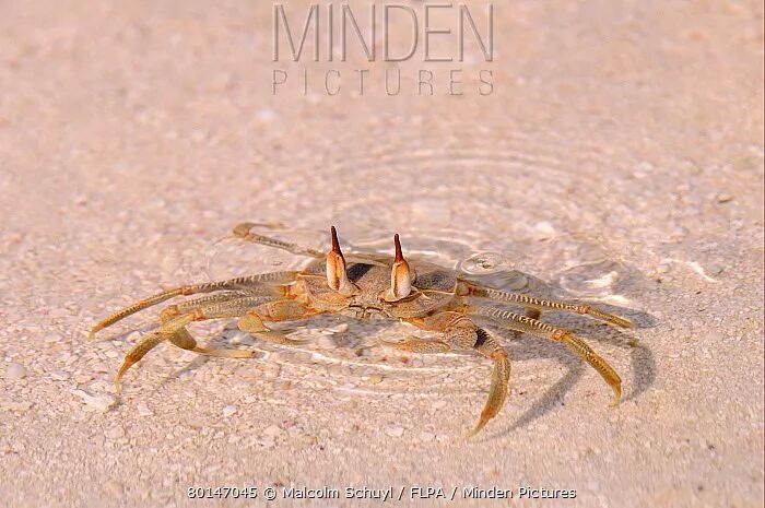 在浅水中游荡的角眼沙蟹。图片:Malcolm Schuyl / FLPA