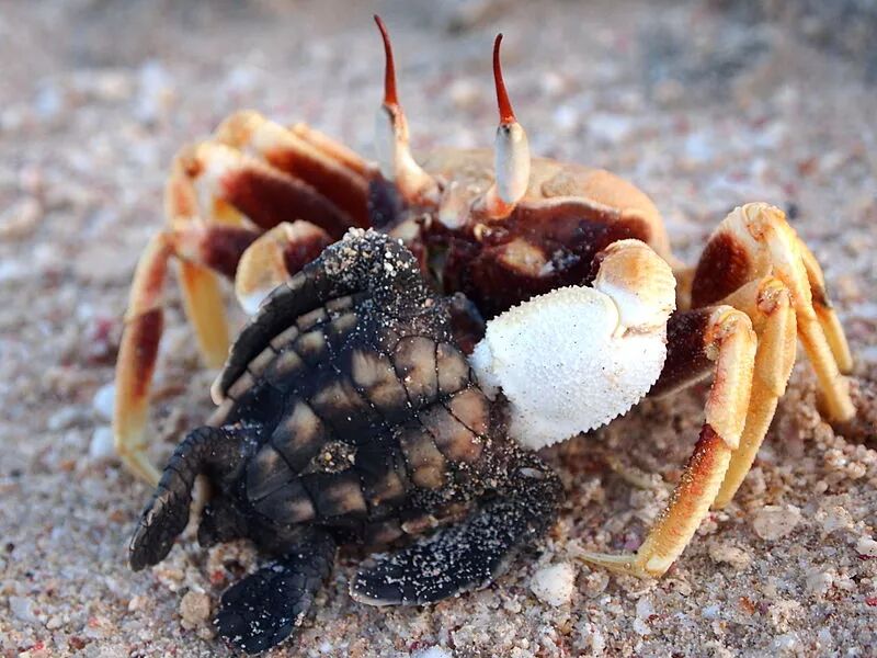 捕获一只赤蠵[xī]龟的角眼沙蟹。图片:Gnaraloo Turtle Conservation Program / wikipedia