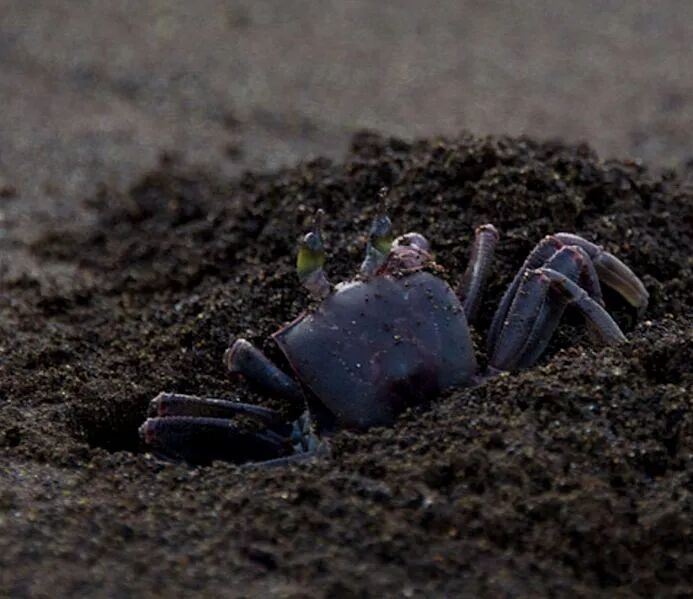 挖洞中的角眼沙蟹(这是它正常的运土速度呢!)。图片:mrdannyfu / youtube