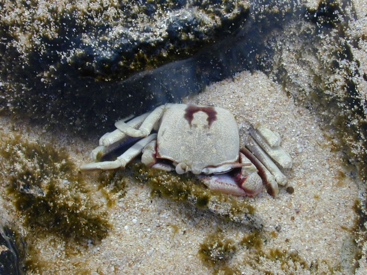 幼蟹的隐身技能相比于成年个体更厉害,它们有着和沙子更相似的伪装配色,在沙滩上走起来时,就像一小块移动的沙块。当你想凑过去看时,还没到洞口的幼蟹也许会停下脚步、躺在沙滩上,静静地观察你的举动。隐身于沙滩上,角眼沙蟹的幼蟹们就可以躲过一劫,逃过猎物的追捕。