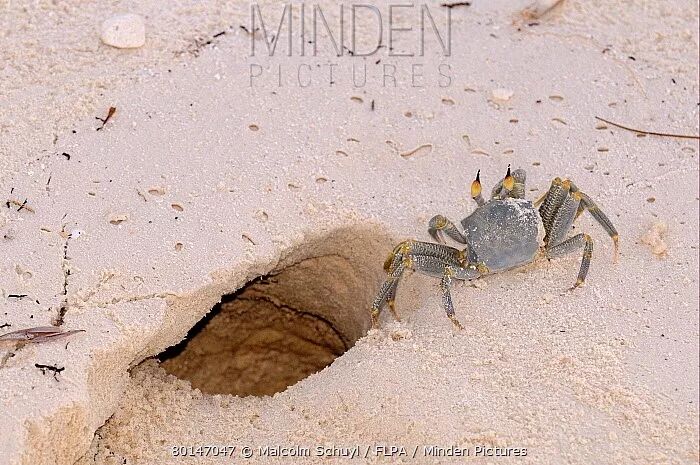 在洞口前停下的角眼沙蟹。图片:Malcolm Schuyl / FLPA