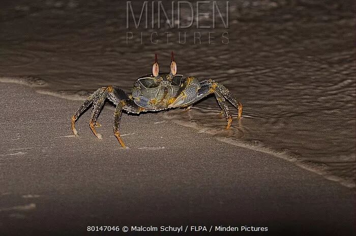 夜间溜达的角眼沙蟹,不过这只的外壳颜色似乎比较深?下文告诉你为什么。图片:Malcolm Schuyl / FLPA