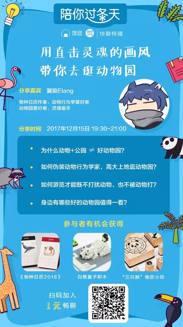 本周五,日历娘邀请了翼狼老师作为嘉宾,为大家带来线上沙龙——《用直击灵魂的画风带你去逛动物园》,互动席位先到先得,立刻报名,就可以和翼狼直接交流!
