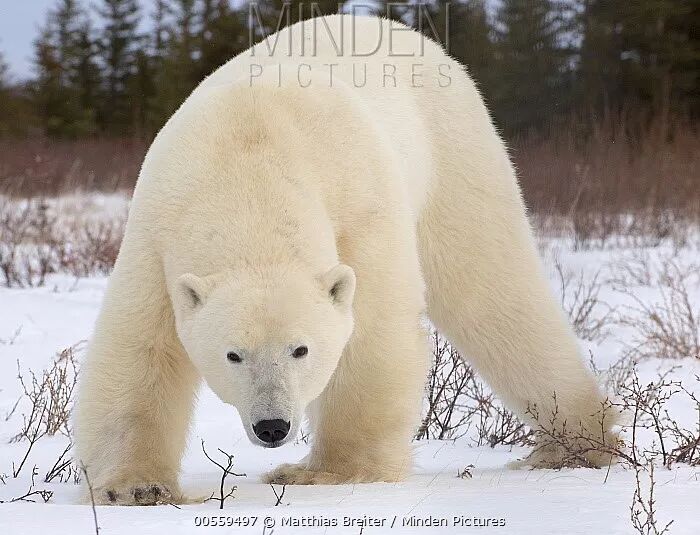 作为北极熊生境的海冰,是时刻漂流不定的,因此,北极熊也不像其它熊一样具有固定的领地。它们在这颗星球北端广阔的白色冰面上四处游荡,独来独往。只要有海豹冒出冰面,它们就可以凭借敏锐的嗅觉在1.6千米以外发现,或者探测到一米冰层之下的海豹气味,然后蹲在呼吸孔边守株待兔。当它们需要游泳去寻找另一片冰面时,也可以前肢划水、后肢掌舵地稳健前进,以平均每小时10千米的速度续航数天,因此,北极熊常也被归为海洋哺乳动物。