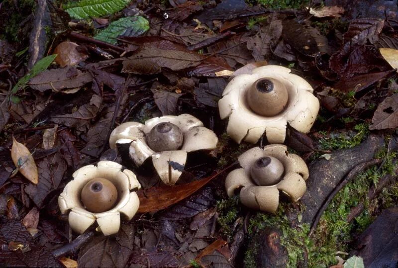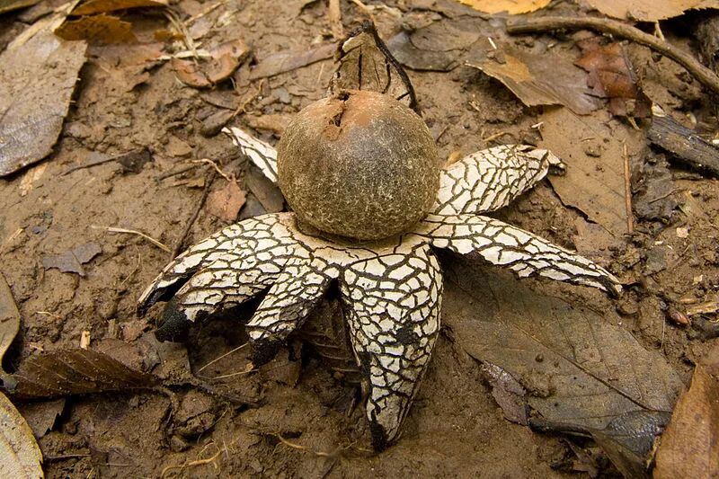 硬皮地星是一种在山林中常见的大型真菌,它曾经被划归为地星科的一员,后来从目这一级别中独立出来。在现在的分类系统里,硬皮地星属Astraeus是牛肝菌目 双核菌科 中的一个小属。