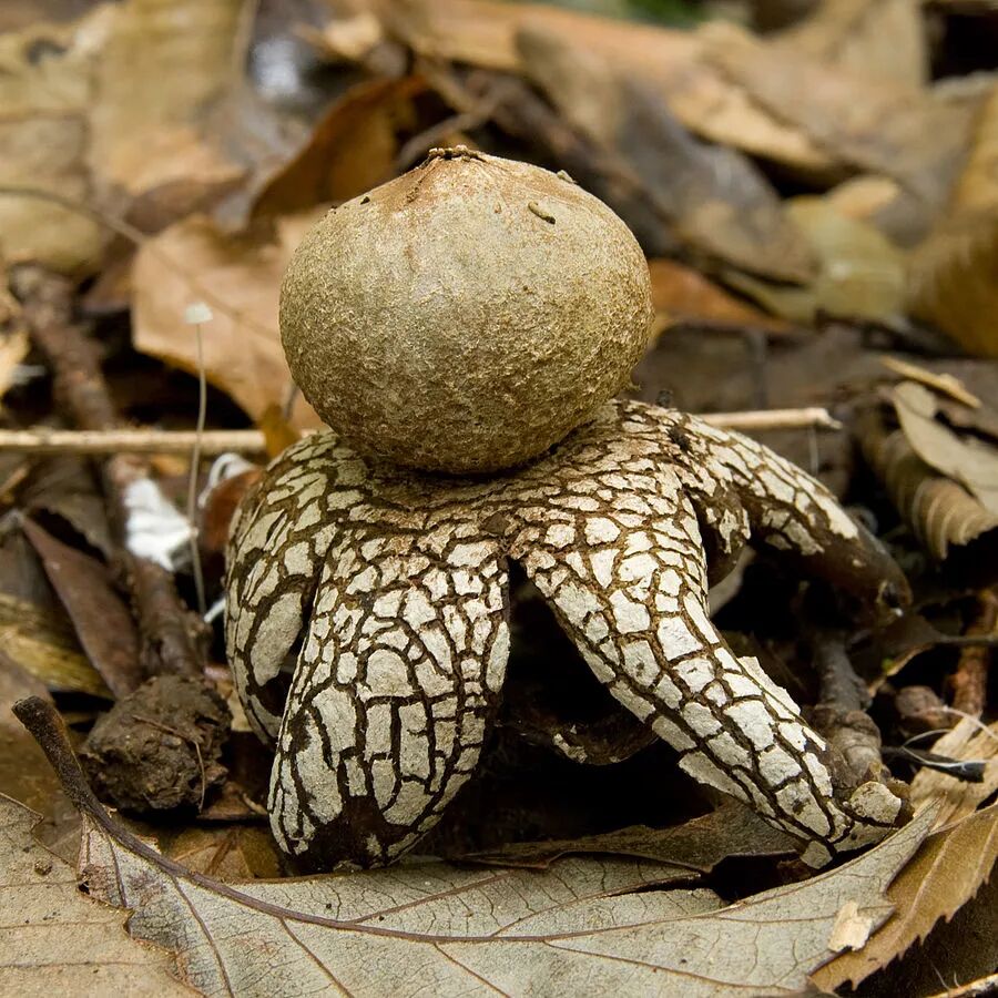 它的英文名字更直接,就叫hygroscopic earthstar(吸湿地星)或者 barometer earthstar(湿度计地星)。不知道你们怎么看,反正我是觉得硬皮地星在伸展的时候样子不像星星,倒像是个章鱼,我国的一些地方管它叫地蜘蛛,嗯……这也挺形象的。