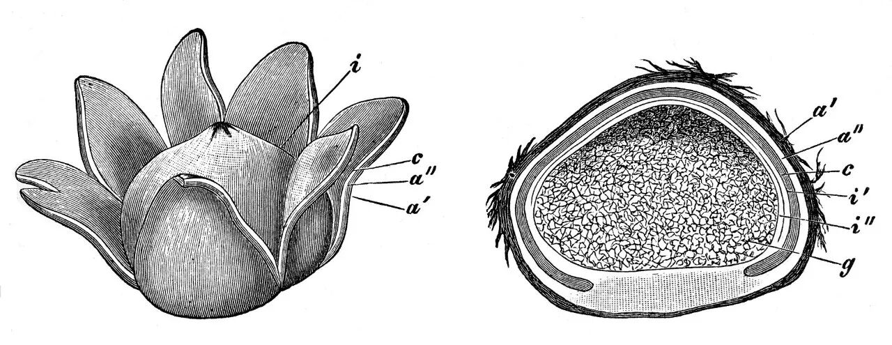 硬皮地星的子实体结构,a是外包被、 i是内包被、c是纤维层。图片 biodiversitylibrary.org