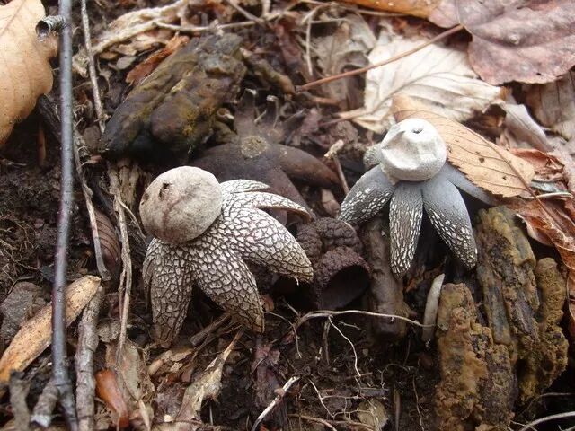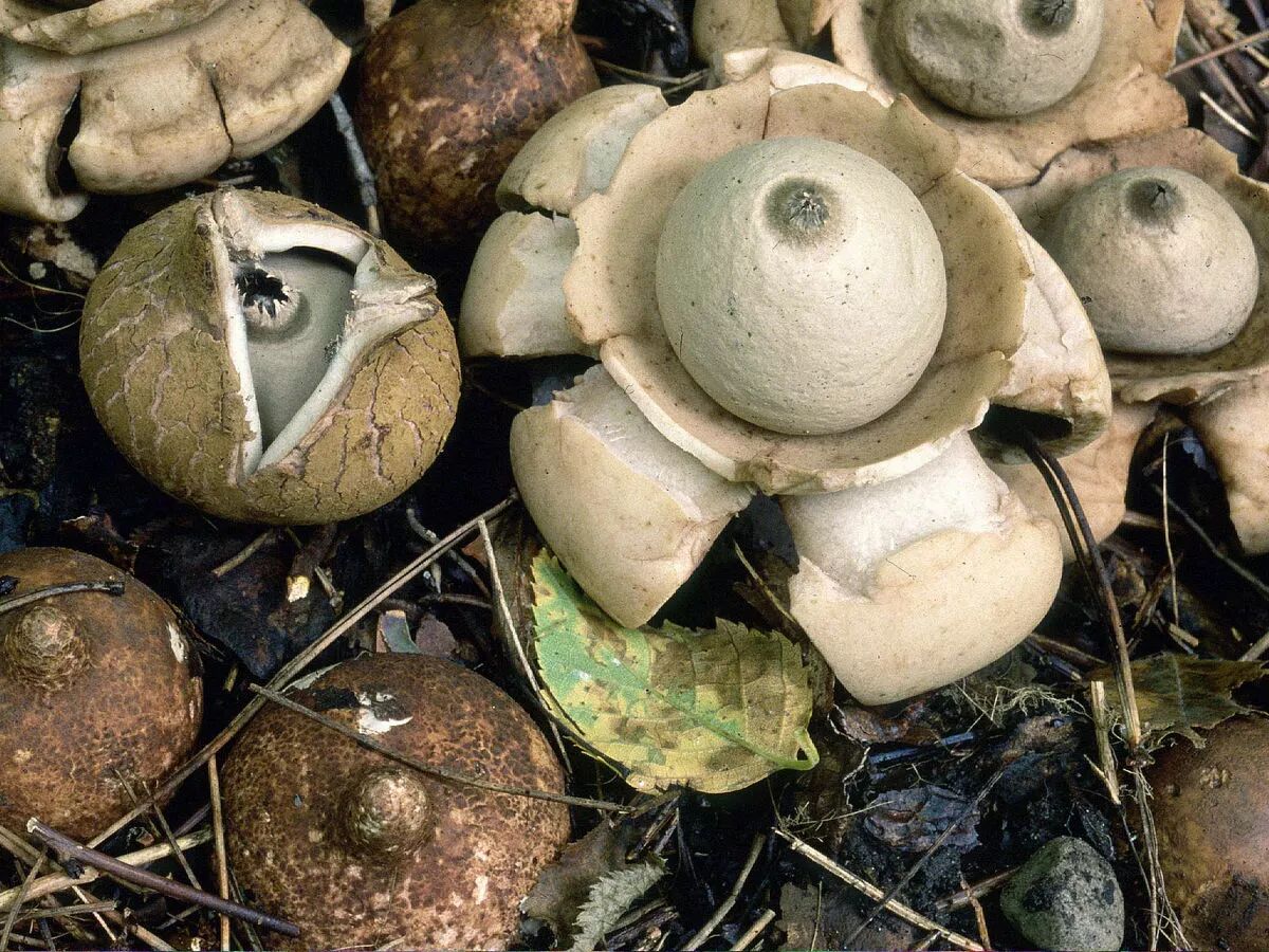 地星科曾经归属于马勃目(喷孢子的方式确实像马勃 <戳这里回顾这枚可以吃的“喷子”> ),现在独立成地星目,其中有五六十个物种,绝大多数虽然没毒但也苦涩不堪食。我国常见的有尖顶地星Geastrum triplex、毛嘴地星Geastrum fimbriatum、袋形地星Geastrum saccatum、褶皱地星Geastrum striatum等等,其中有一些种类也和硬皮地星一样能做伸展运动。