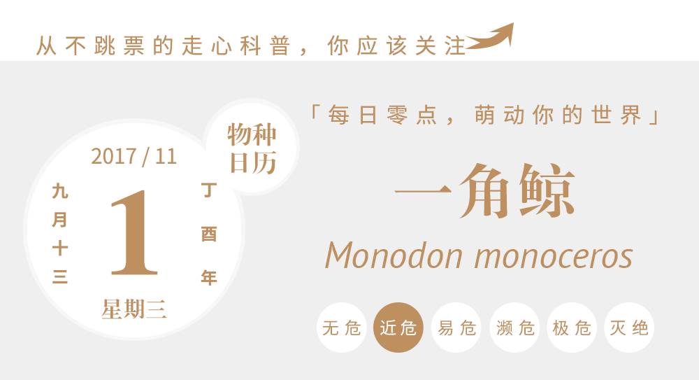 一角鲸栖身人迹罕至的北国一隅,从英国探险队第一眼见到它们至今,已经过去了四百多年,一角鲸仍保持着一丝神秘。它们幸运地躲过了商业捕鲸的魔爪,全球现存的种群规模约7万头,尚无灭绝危险。今天,一角鲸长牙的交易在很多国家仍受到管制,即使是北极原住民,猎捕一角鲸也有着严格的配额。