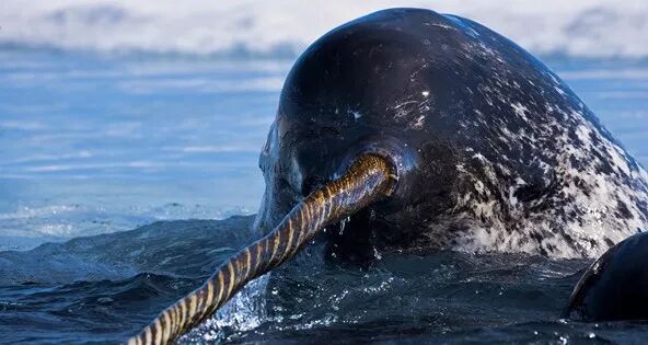美国国家地理和派拉蒙影业拍摄的一角鲸炫耀长牙的镜头。来源:Movieclips / YouTube