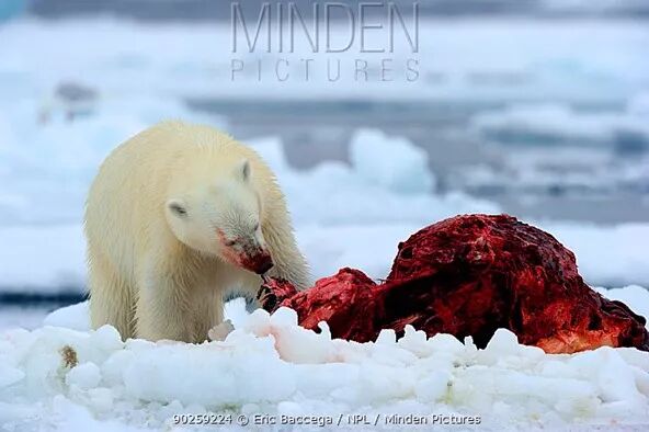 北极熊成功猎杀了一角鲸。图片:Eric Baccega / NPL