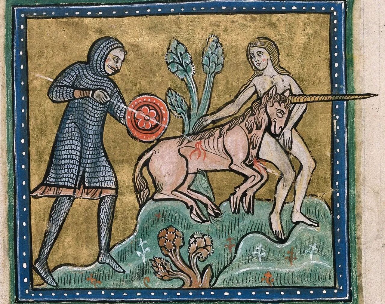 13世纪英国《MS Royal 12 F XIII》上画的独角兽,现藏于大英图书馆。图片:Steffen / my-albion.blogspot.jp