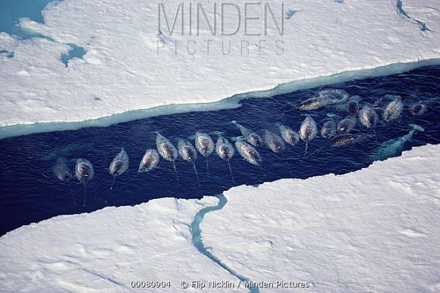 成群迁徙的一角鲸。图片:Paul Nicklen / National Geographic