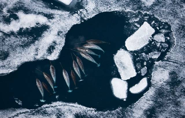 成群的一角鲸。图片:Paul Nicklen / National Geographic