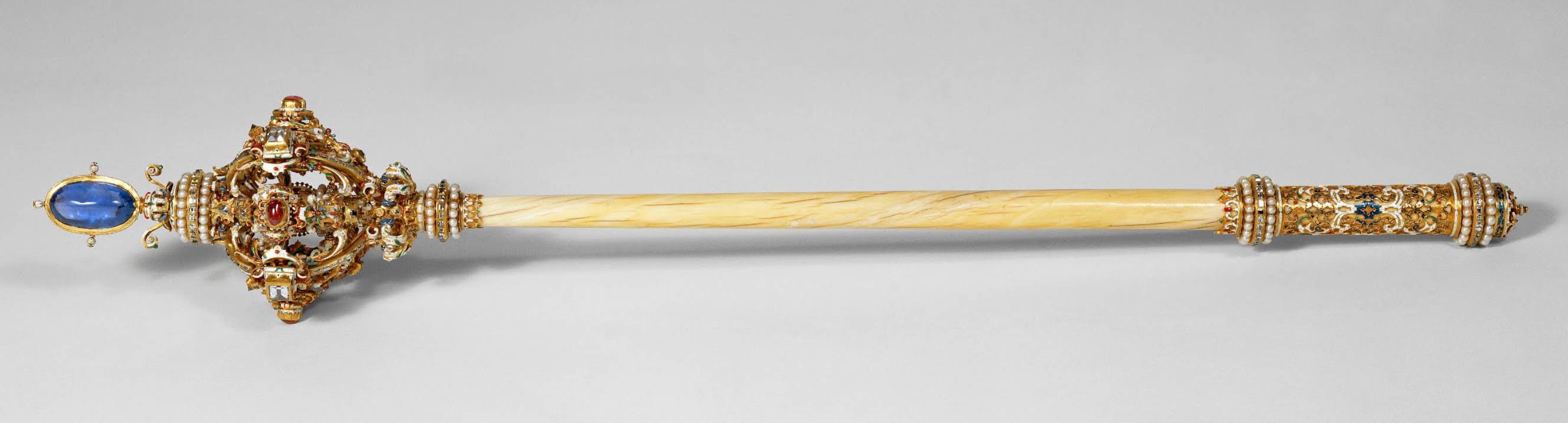 哈布斯堡王朝的“独角兽角”权杖,由金匠Andreas Osenbruck制作于1615年。图片:Treasury, Kunsthistorisches Museum Wien