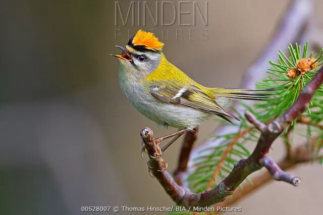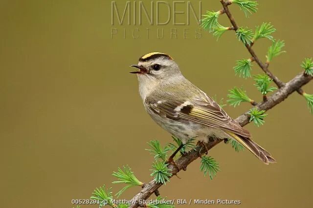 在枝头鸣唱的雄性戴菊。来源:Josep del Hoyo / HBW