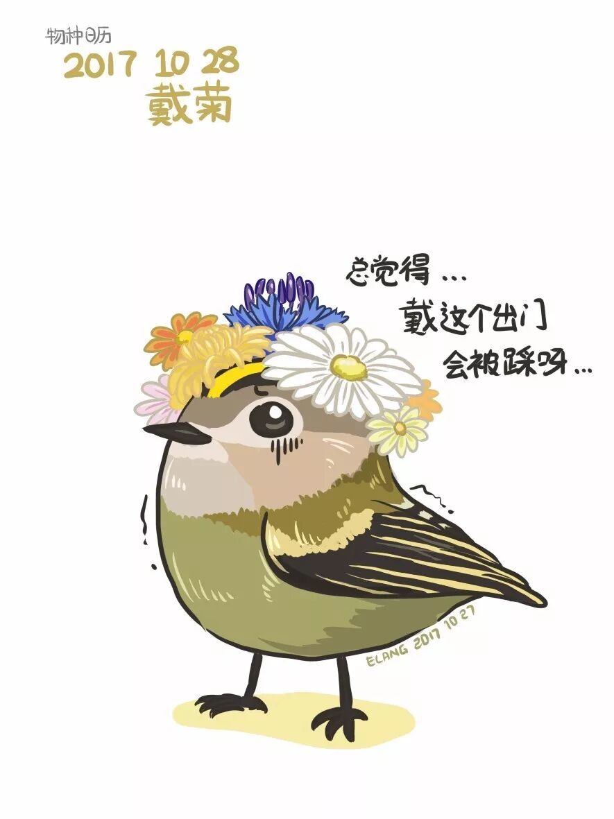 在广阔的欧亚大陆之上,生活着一种默默无闻的小鸟,它身形渺小,生命短暂,名气也不甚响亮,然而就是这种小鸟,几乎满足了人们对于可爱的所有印象。它们动作轻快,形如玩具——身体浑圆如绒球,头戴花冠,脸颊圆润,眼睛黑亮——它就是今天日历的主角戴菊Regulus regulus。