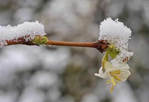 原先人们的注意点不在于它们模样奇葩的果子,而是在于它们的花。春天的脚步还没走近,往往雪还没化,它们便“迫不及待”地开花了。一般来说,它们会先开花后展叶,所以你可能会看到光秃秃的枝干上就点缀有奶白色的小花。它们的花朵虽然很不起眼,但散发着一股极其馥郁的香气,也难怪它们在欧美国家有个非常诗意的别名叫“春天的甜蜜香气”(sweet breath of spring)。