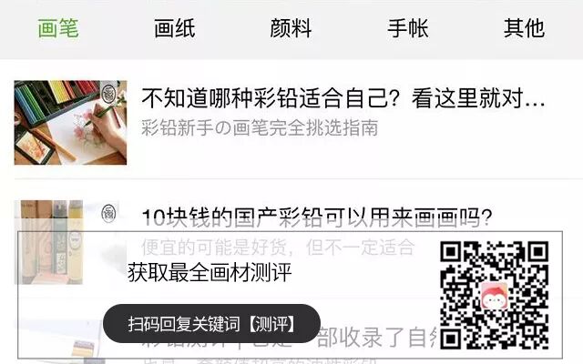 △长按识别二维码回复 测评 看最全的画材测评