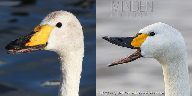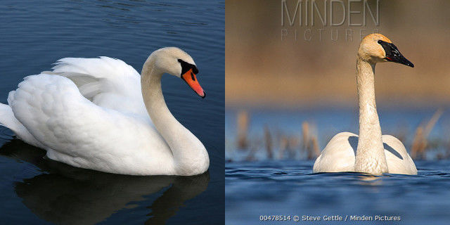 前三个物种基本看名字就能知道长相,后三者稍微有点难区分。简单说,大天鹅的体型中等,喙的黄色区域多;小天鹅体型较小,喙的黑色区域多;而黑嘴天鹅体型最大,脖子最长,喙一般是纯黑色,偶然有黄点。西欧文化中的天鹅形象,最常见的是疣鼻天鹅。