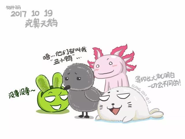 你并不丑呀,小天鹅(滑动看看!左至右分别是碧光环、天鹅、蝾螈、琴海豹)。绘图:翼狼Elang