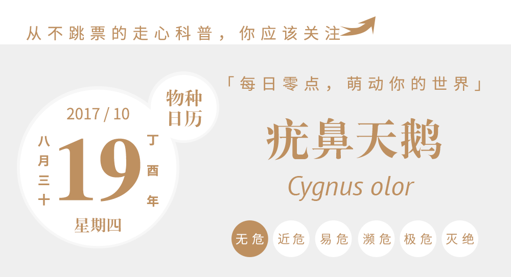 今天六种天鹅在IUCN红名册上都属于“无危”。作为一群受人爱戴又分布广泛的鸟类,它们看起来应该很安全,但是历史上并非总是这样。