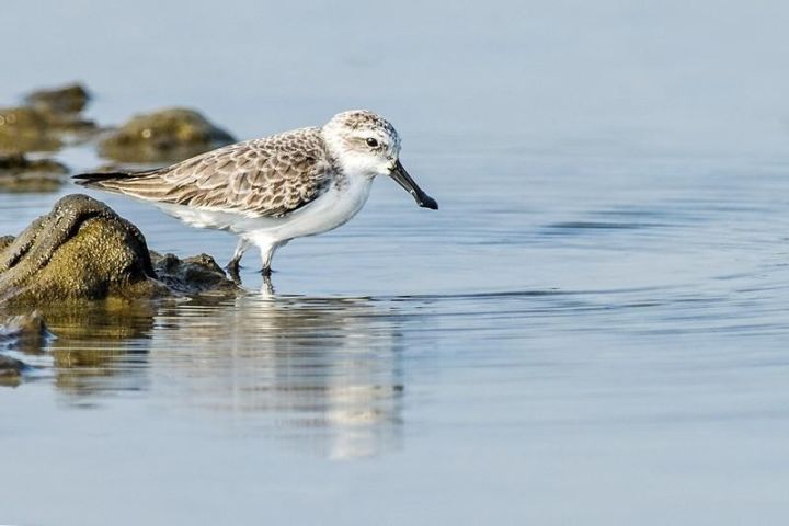 勺嘴鹬的萌还不仅仅在嘴型上。作为一枚换装达鸟,勺嘴鹬还会在繁殖季节变装成红衣的侠客,吸引异性与之交配。可惜它们的繁殖地在俄罗斯远东西伯利亚的冻土带,难得亲眼目睹其繁殖羽。平时大家在国内见到的勺嘴鹬都是迁飞季节在中转站或越冬地的灰白样,混在大量鸻鹬[héng yù]类的群体中,并不容易分辨出来。只有用长焦望远镜仔细地搜寻,才有可能寻觅到勺子的身影。