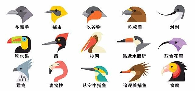 金雕的喙带钩,利于撕开猎物;啄木鸟的喙像尖锥,可以凿开树皮寻找躲在里边的虫子;翠鸟的喙像长矛,适合在水里捉鱼……鸟嘴形状很大程度上反映了它们吃什么食物。图片:Tyler Lang;汉化:日历娘