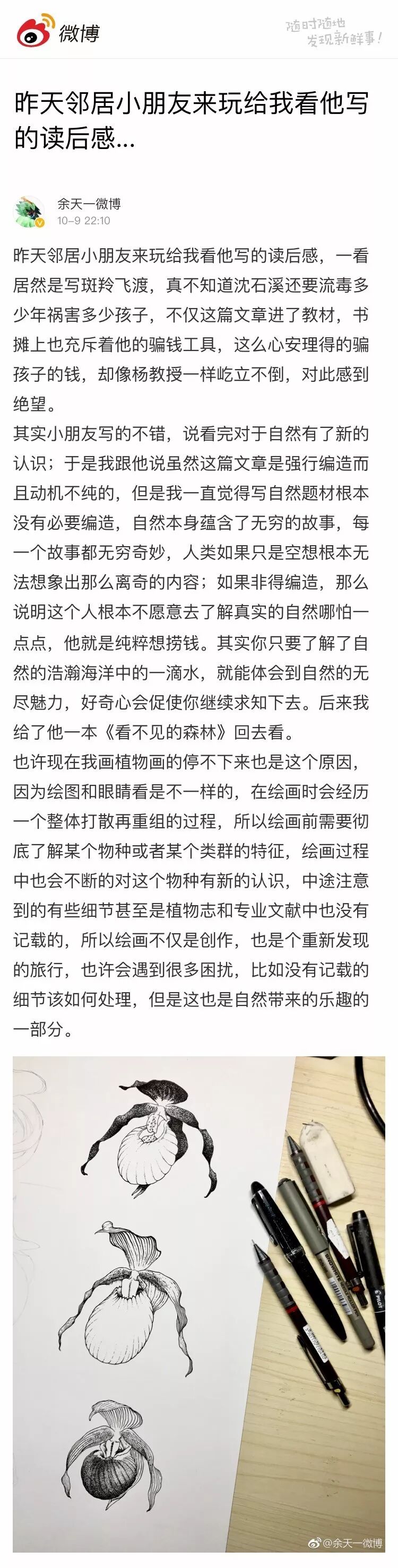 前几天,物种日历作者@余天一