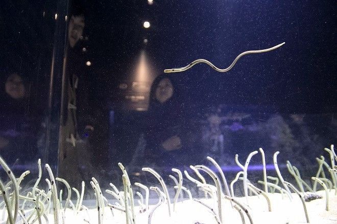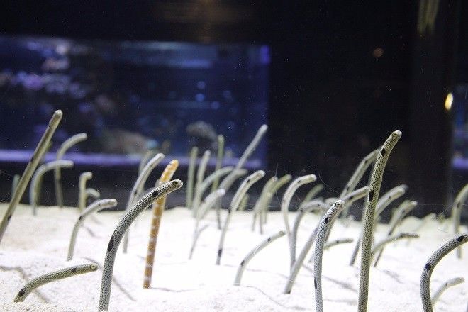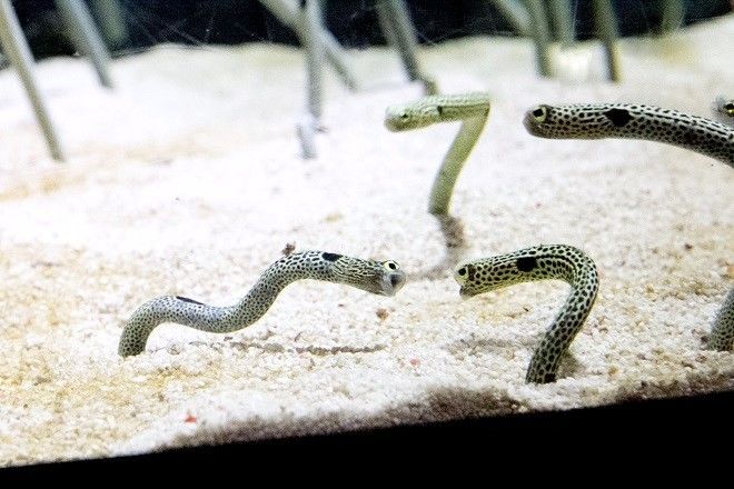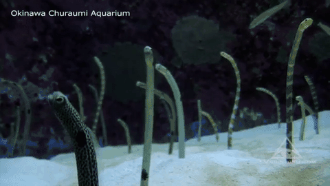 今年4月份在冲绳的美丽海水族馆,我终于邂逅了萌神本尊。一群花园鳗探头探脑,不断地伸缩运动,这种奇怪的萌点瞬间让气氛变得很微妙……