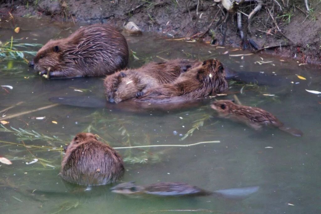 河流中央的河狸家。图片:Doug Wechsier / naturepl.com