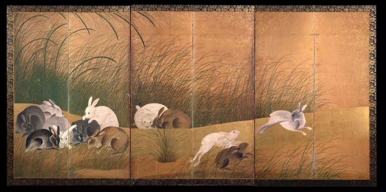 江户时期的日本屏风,上面是萌萌的兔子们。来源:大英博物馆