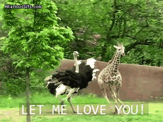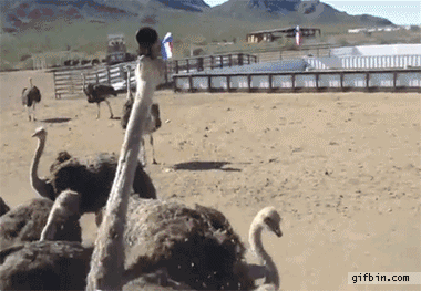 追着长颈鹿跑的鸵鸟。图片:Hilariousgifs.com