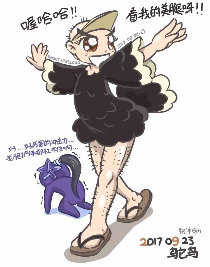 鸵鸟有着长长的眼睫毛,大大的眼睛,身上有着黑色带白边的羽毛(看起来和黑色带蕾丝边的洛丽塔裙装非常相似!感觉非常适合做成大眼黑裙病娇萝的拟人)。