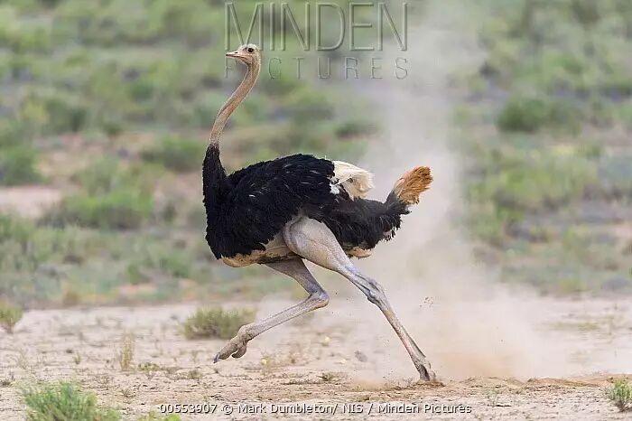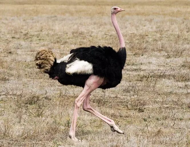 这么一双大长腿能够使鸵鸟在奔跑时加速到50km/h,并且维持相当一段时间的疾奔状态,其速度和耐久力足以使它摆脱很多捕食者的追捕。然而即便是跑不掉,这么一双充满爆发力的腿也是非常可怕的武器,而且其脚趾前端还长着锋利而尖锐的爪子,一脚下去直接把非洲狮踢得开膛破肚的记录也曾有过。