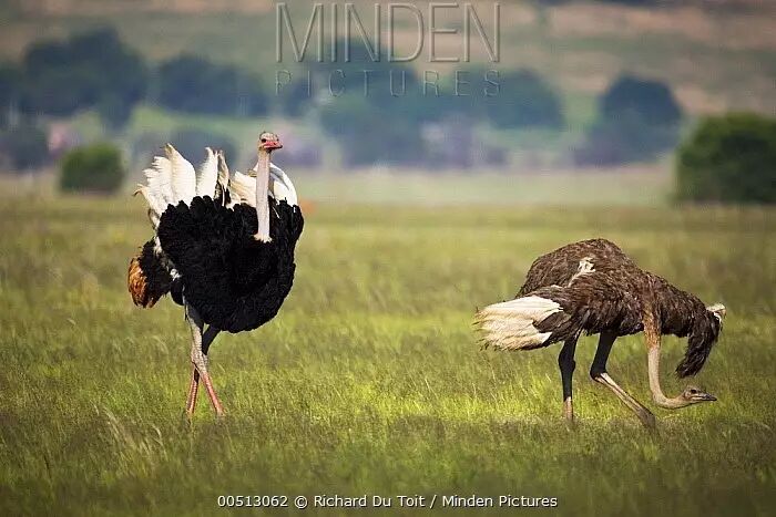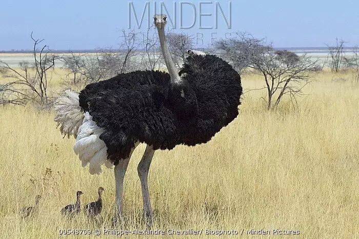 不过话又说回来,上面的这一条在鸵鸟的身上似乎并不是特别太适用——因为雄性鸵鸟在孵蛋和育雏的过程当中同样担当着非常重要的角色。鸵鸟是一夫多妻制的动物,通常一只雄性鸵鸟在交配季节能与多只雌性进行交配,并且这些雌性都会将卵产在同一个、由雄性鸵鸟提前准备好的“窝”中。随后由雄性个体和一只占主导地位的雌性轮流负责孵化,即便是在雌性抱窝的时候,雄性鸵鸟也会在附近负责警戒工作。