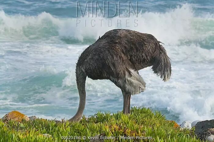 关于鸵鸟(ostrich)有一个传播很广的流言——当鸵鸟遇到危险的时候,会把脑袋埋进沙子里,装作看不见也听不着的样子。于是,有人开始用“鸵鸟”来形容那些遇到困难之后装作视而不见、听而不闻、采取逃避态度的人。不过我相信,最早编造出这一则流言的人应该没怎么见过鸵鸟,也没有去过鸵鸟生活的地方。