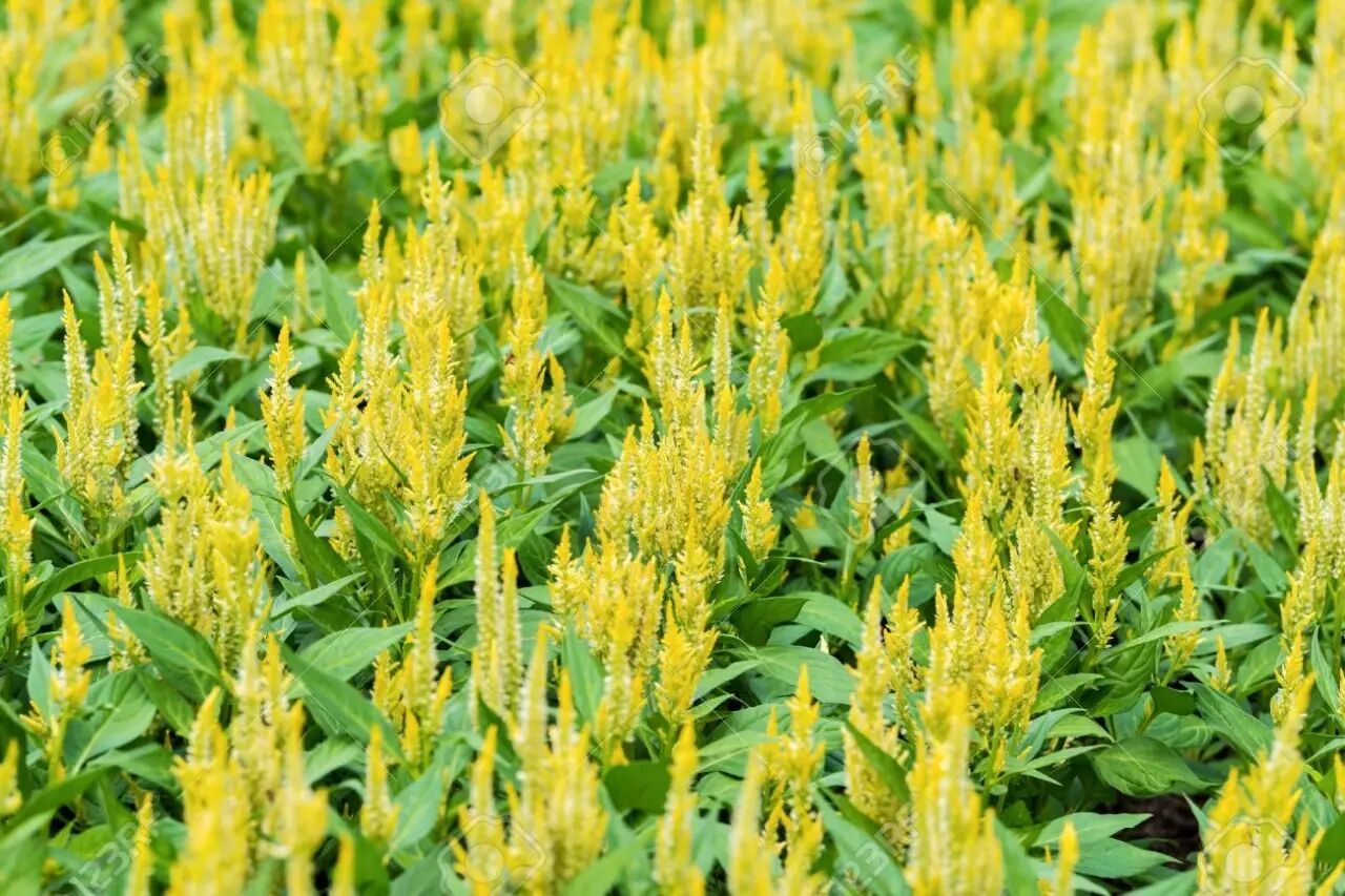这是长着宝塔状花序的青葙,图中为黄色的品种。图片:123rf.com.cn正版图库